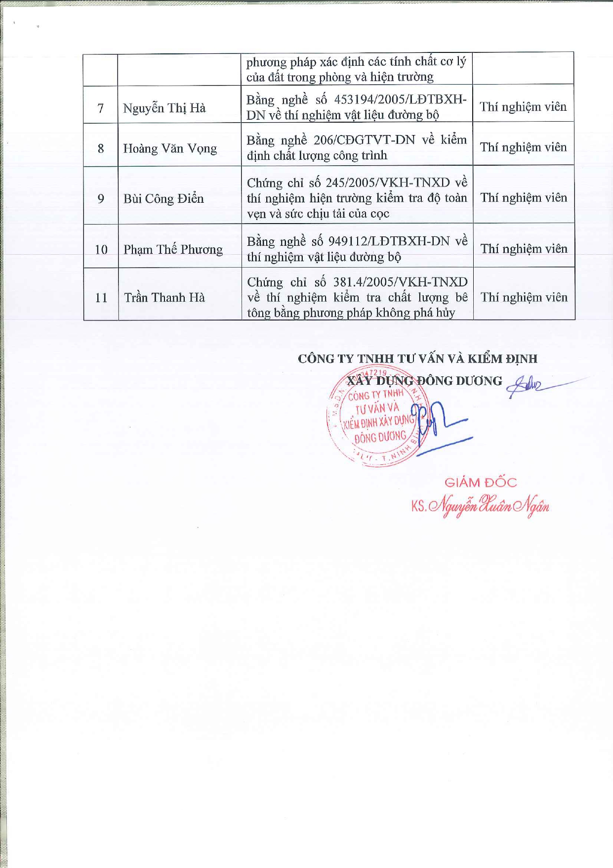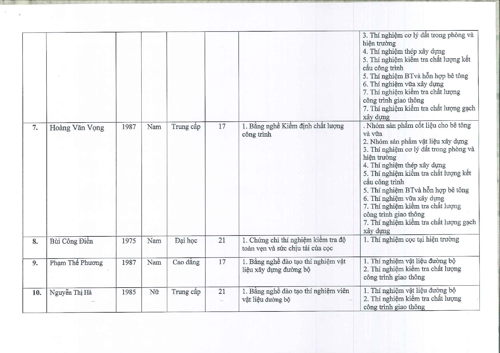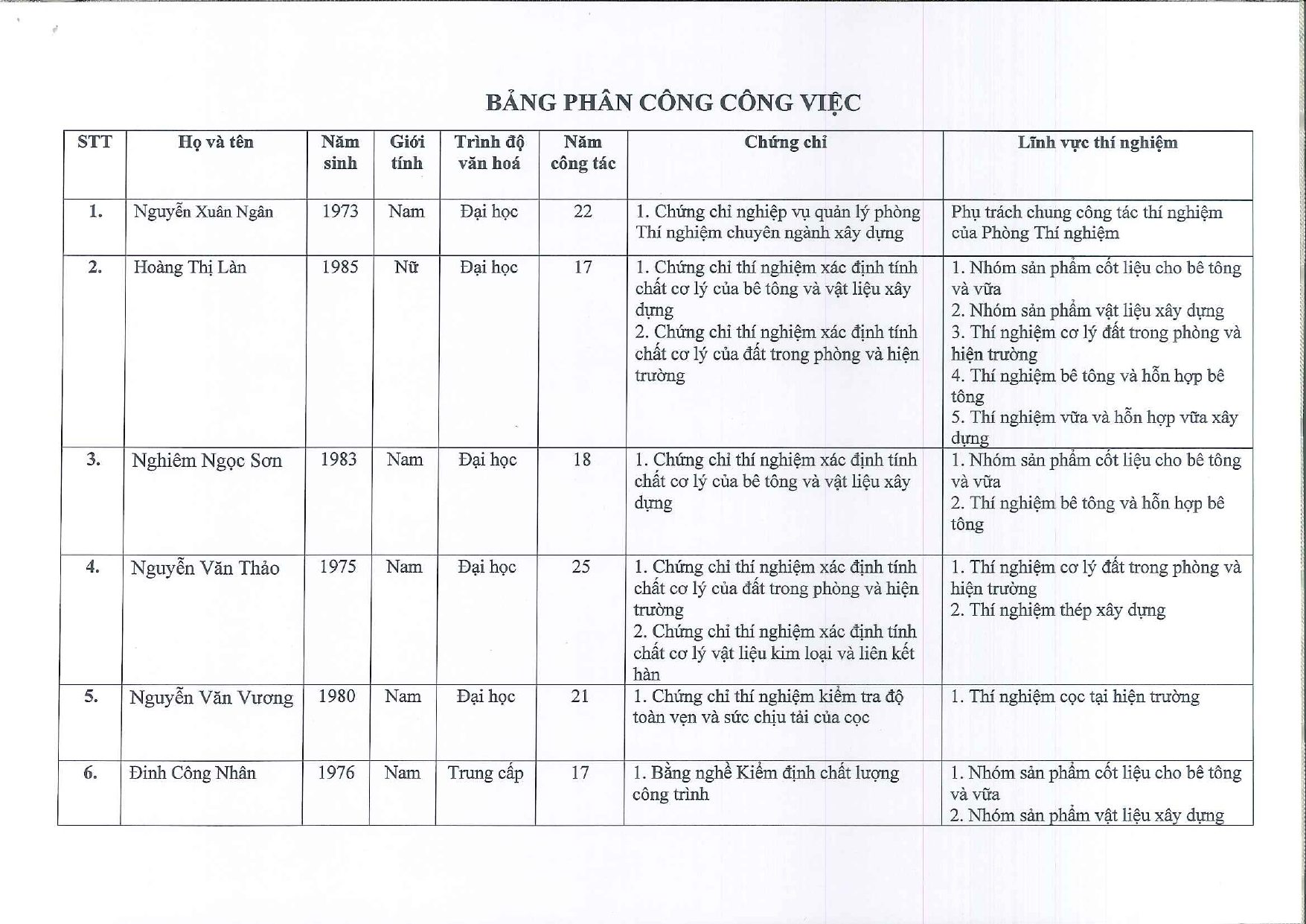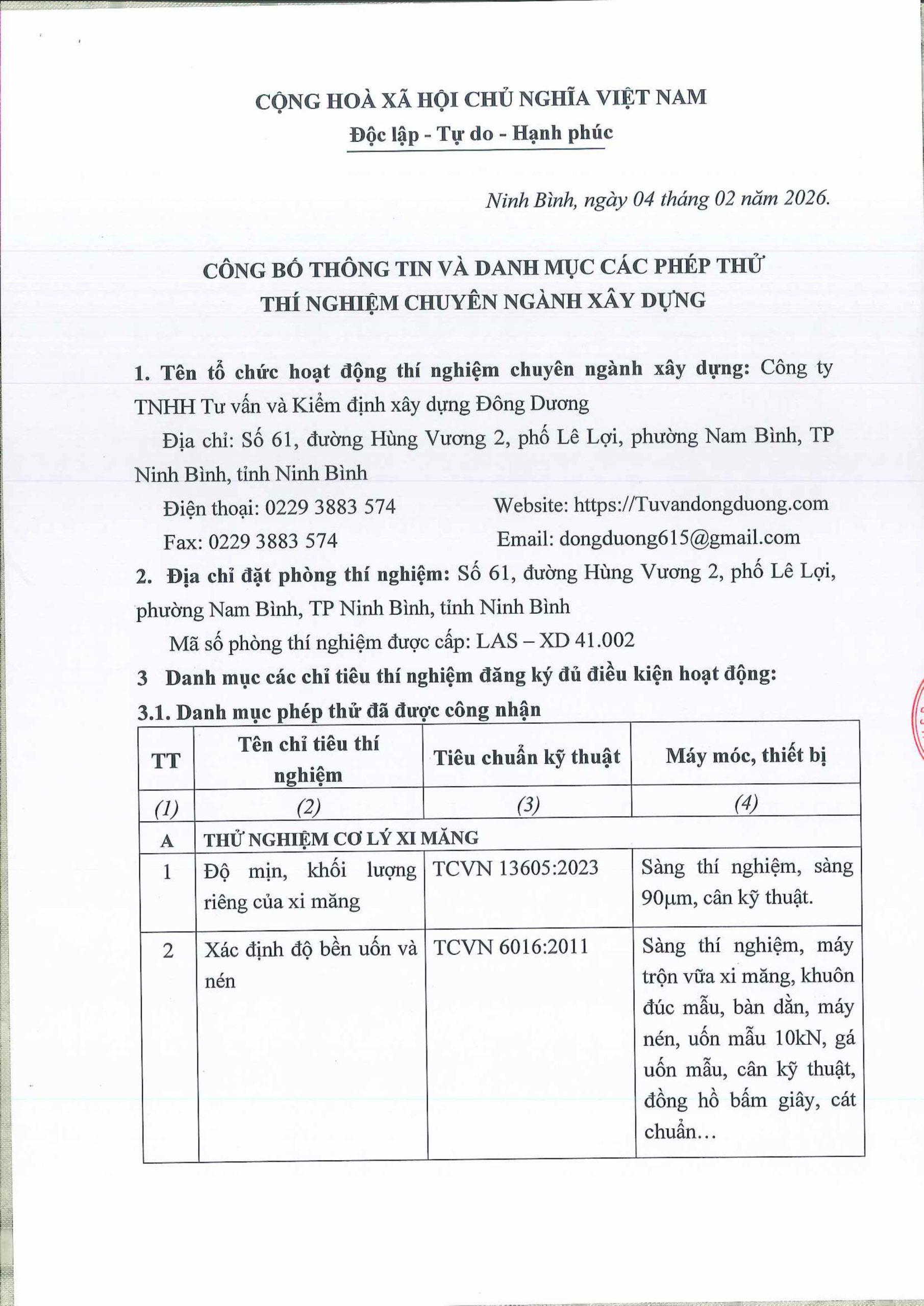 CÔNG BỐ CÁC PHÉP THỬ 1
